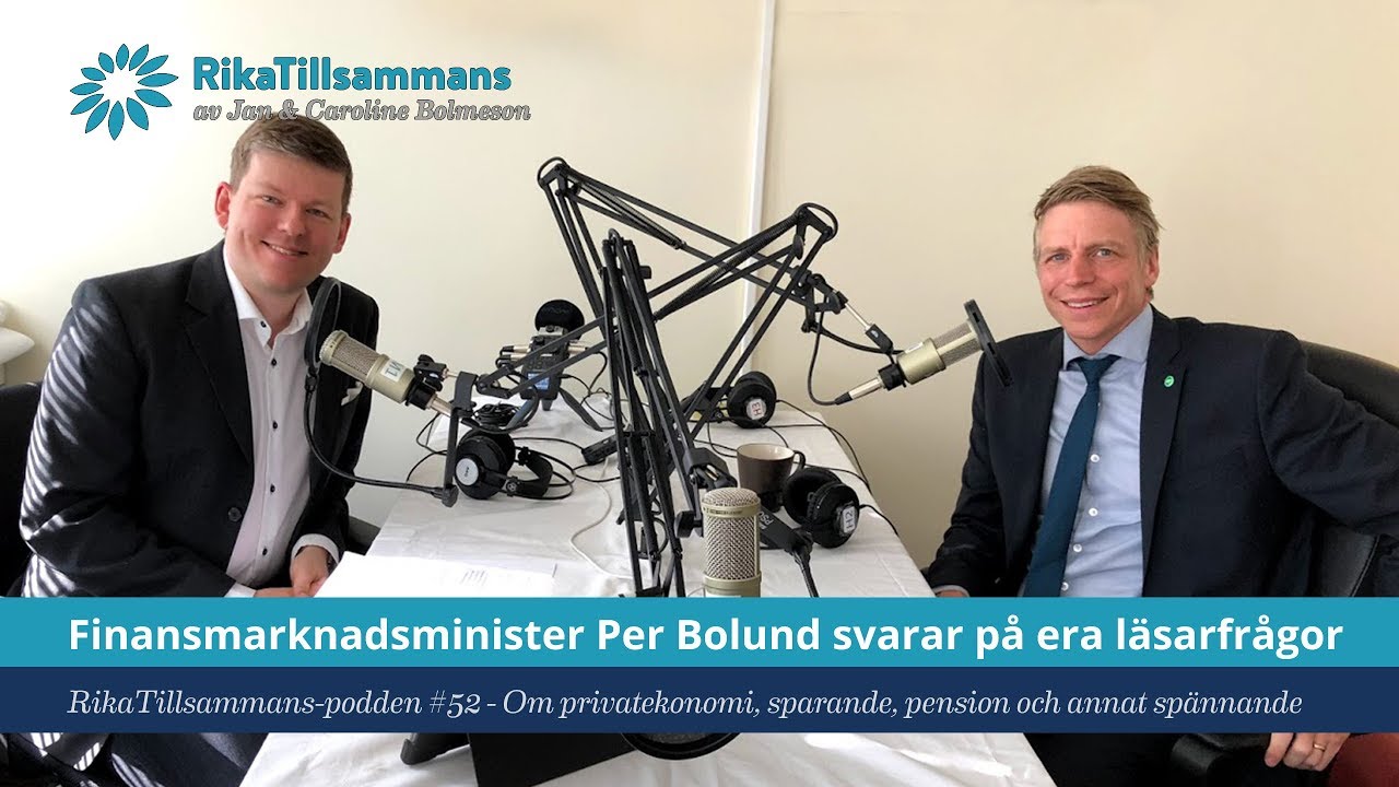 I det här avsnittet intervjuar vi Per Bolund som är finansmarknads-, konsument- och vice finansminister om allt från flytträtt på pensionssparande, ränteavdragets vara eller icke-vara, grönt sparande, eventuella skattelättnader på grönt sparande, incitament kring sparande, bostadssituationen och andra frågor som ni läsare har bidragit med.
