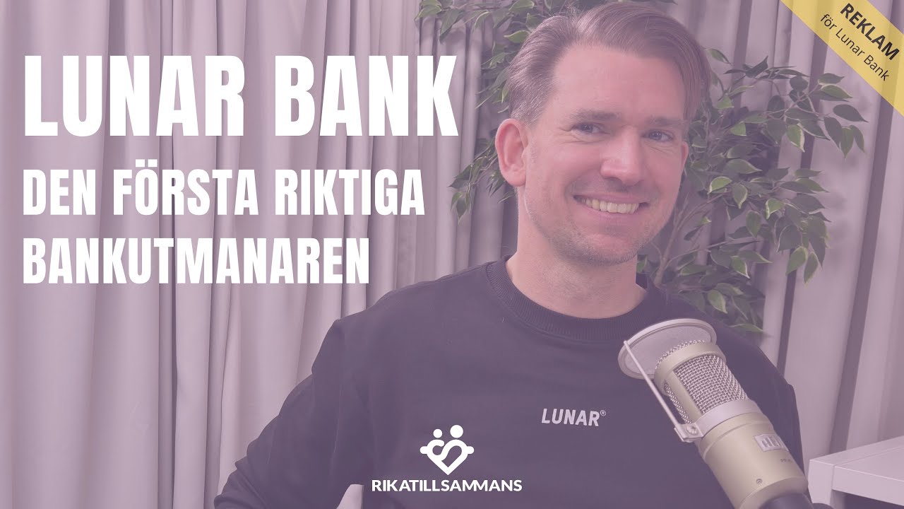 Reklam för Lunar. Idag får vi besök av Mats Persson Bergius som är Sverige- och Norgechef på Lunar, som är den första riktiga utmanaren till de fyra storbankerna. Vi pratar om hur bank borde vara 2024, om bankbranschen, myter och missuppfattningar och hur du och jag kan ha glädje av Lunаr.