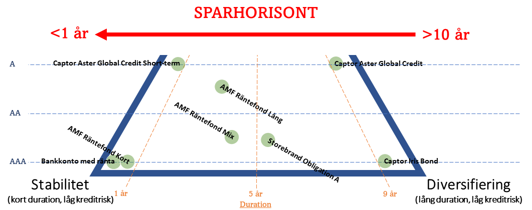 Skydd = bankkonto + räntefond som har en låg kreditrisk + kort duration