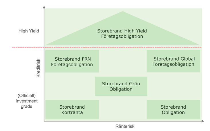 Avkastning = företagsobligationsfond med kort/mellan duration och hög kreditrisk