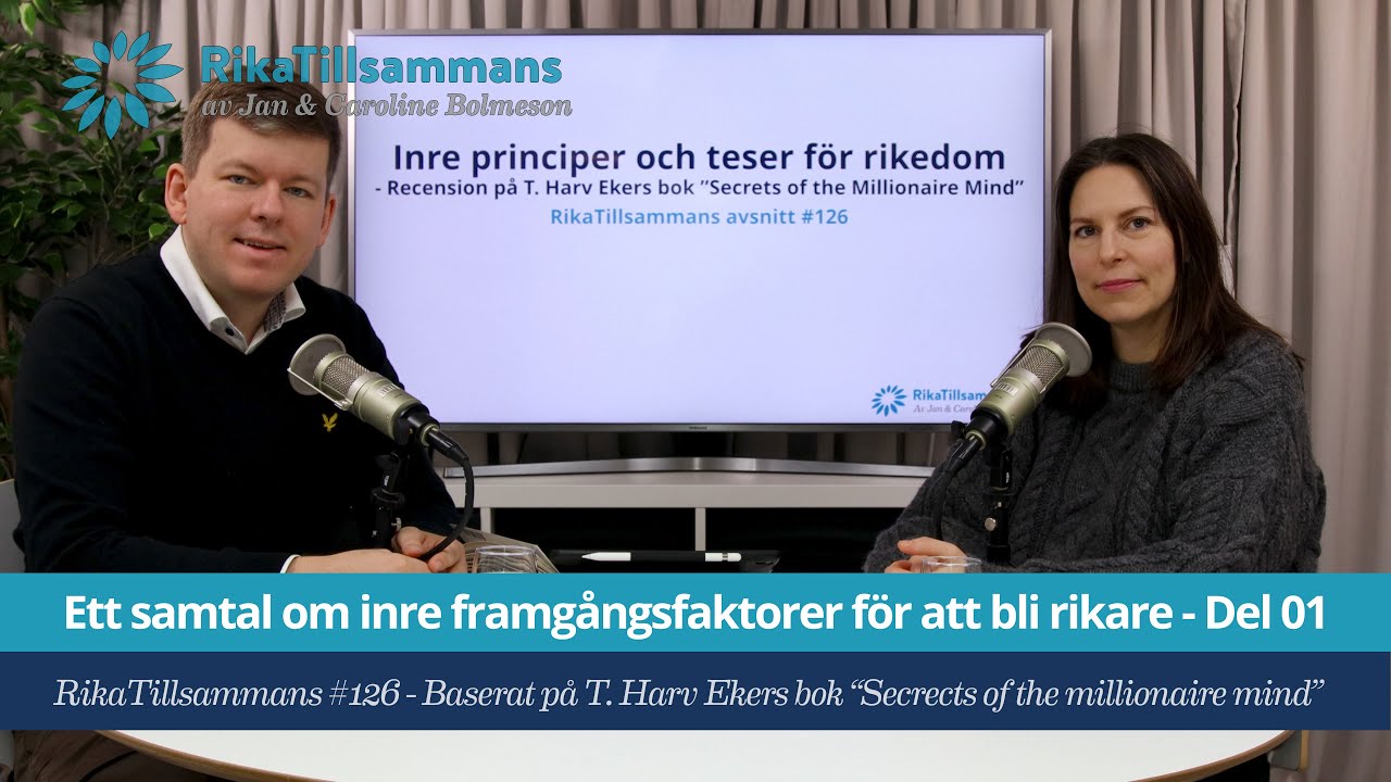 Jan: Idag är det dags för avsnitt 126 och idag tänkte jag att vi skulle prata om inre framgångsfaktorer, principer, teser eller regler för rikedom. Det bygger på boken av T. Harv Eker, ”Secrets of the Millionaire Mind: Mastering the Inner Game of Wealth”. Det handlar alltså mer om hur man kan tänka om man vill skapa sig ett rikare liv, tjäna mer pengar och bli mer framgångsrik.