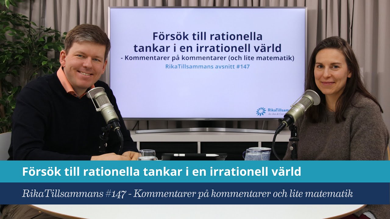 Idag är det dags för avsnitt #147 och jag tänkte att vi skulle göra ett försök till rationella tankar i en irrationell värld. Jag tänker att hela världen är lite irrationell nu; särskilt börsen. Det här avsnittet kommer bestå av kommentarer på kommentarer, alltså våra kommentarer till kommentarer vi har fått in på bloggen eller andra ställen på nätet. Sedan blir det också lite enkel matematik. Som jag brukar säga, matematik är enkelt men det är inte lätt.
