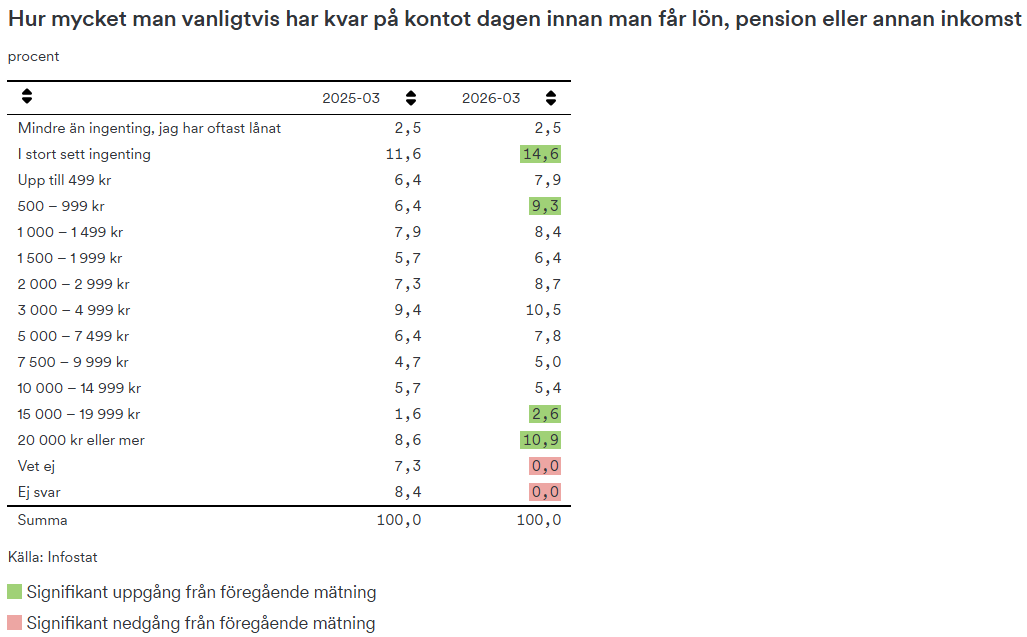 Ekonomisk stress är hemskt att leva med. Men förstår att siffrorna ser ut som de gör, i år är det tuffare jämfört med förra året. Kraftigt minskad köpkraft i år för mig som låginkomsttagare jämfört med förra året. Har haft tomt på lönekontot 5-8 dagar innan varje ”löning” i år. Hände bara 2-3 gånger förra året.
