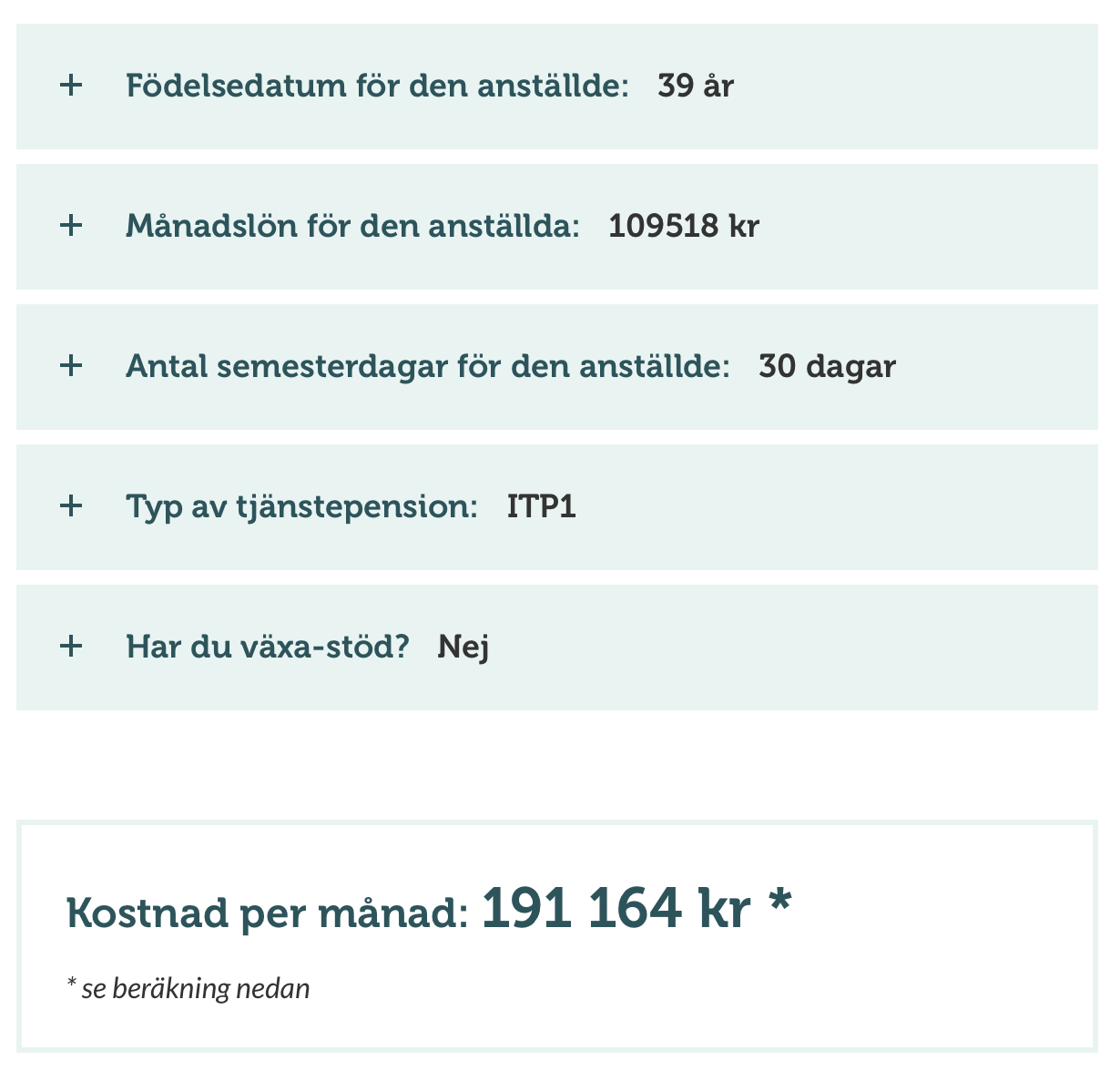 och här hur mycket Företagarna.se räknar på att det kostar att ha en med den lönen: