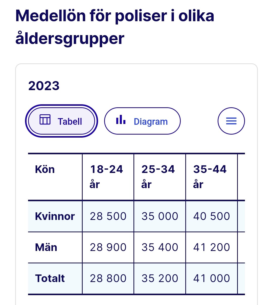 Alltså. Enligt SCB låg snittlönen norr om 40t år 2023. Utöver det tillkommer OB, övertid mm och att man har förkortad arbetstid. Och så kommenderingsuppdrag på det (typ melodifestivalen i Malmö eller någon högrisk-match) En bekant till mig som iofs gjort +25 år skryter om årsinkomst på över 700k.
