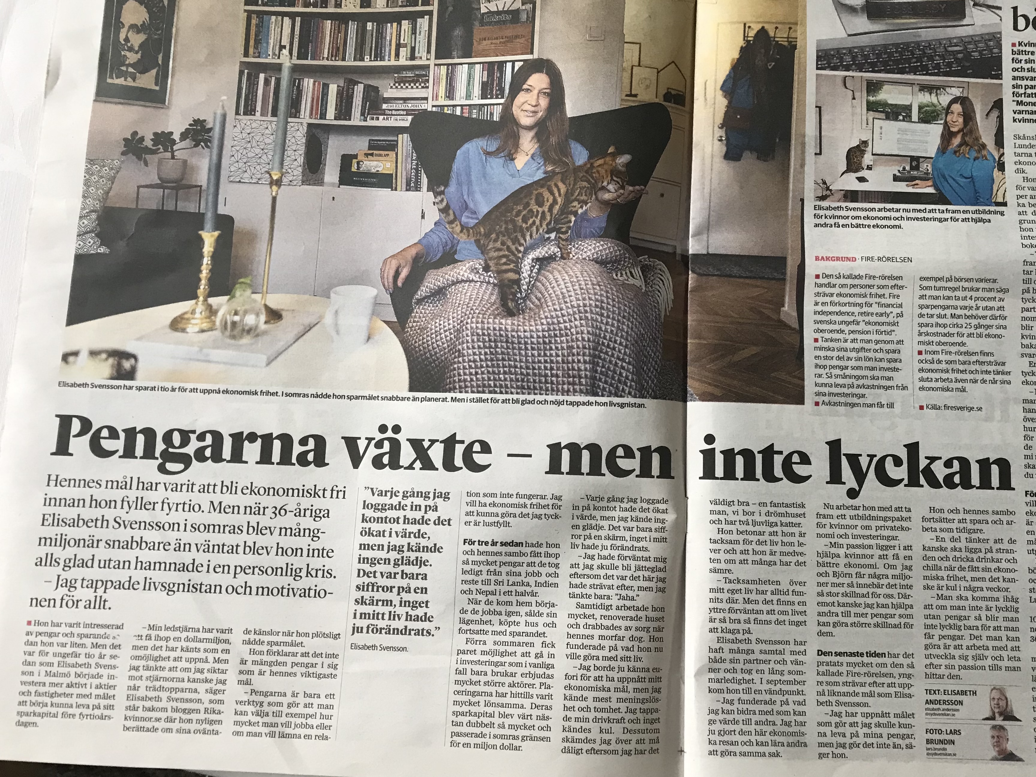 Enligt min kära moder (som alltid sparar läsvärda grejer i tidningen** till mig, vare sig jag vill eller ej) var det nå’t “om en FIRE-tjej idag”. Jag gissade namn och det verkade stämma. Jag ska hämta tidningen** senare idag.