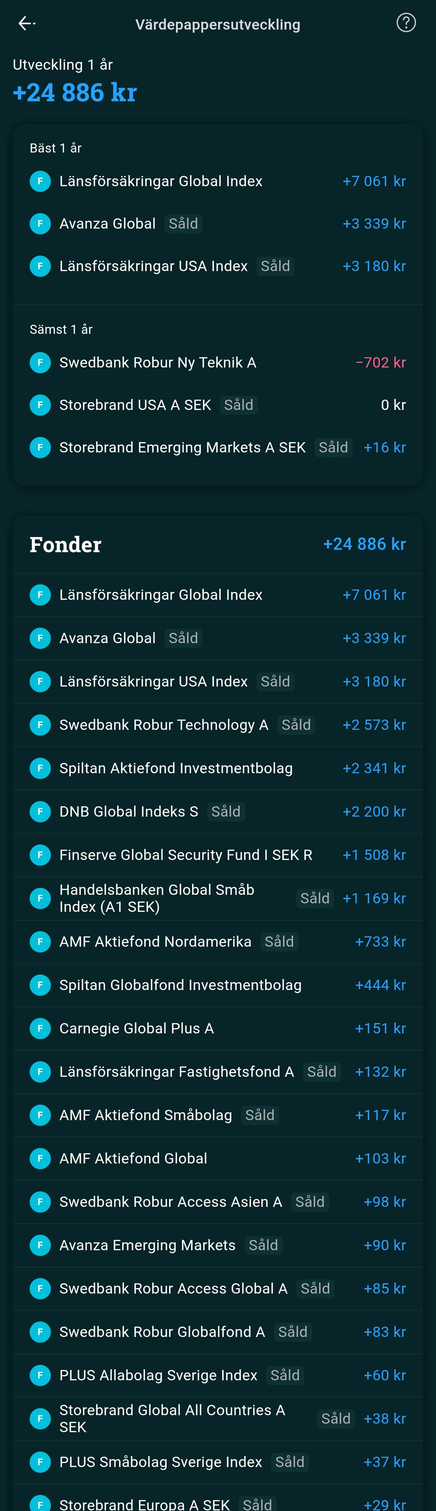 Jag har nu cirka 250 000 kr investerat i Avanza, främst i globala indexfonder (t.ex. Länsförsäkringar Global Indexnära), samt några mindre satelliter.