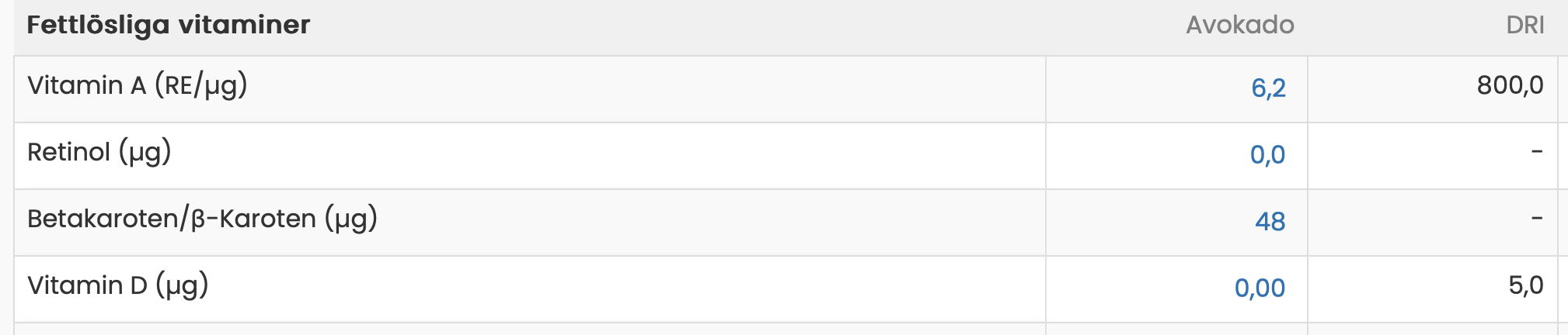 Jag har tagit RDI från sidor så som denna (detta är exempel när jag sökte på avokado).