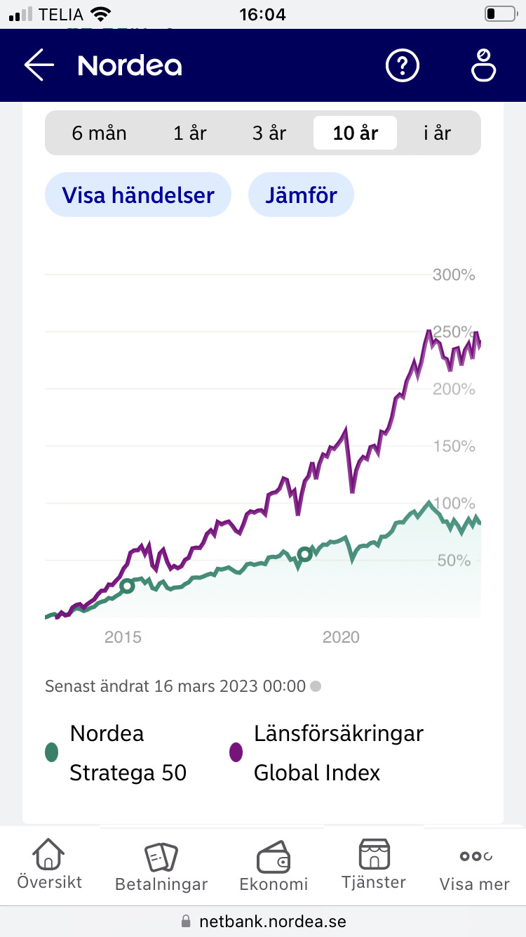 Lägger du ihop deras avgift angiven i procent blir den 0,3% men om du gör motsvarande värdena i SEK blir det 280 SEK av 100 000 SEK. 0,02% delta mellan dessa två uppgifter för samma kostnad. Ergo – läs inte deras värden i procent utan summera det de skriver i SEK. Annars får du fel kostnad.