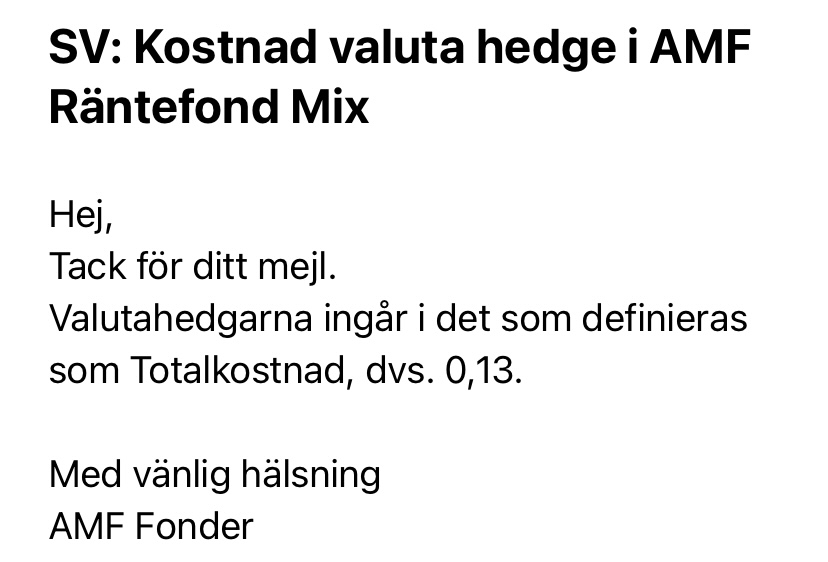 Det jag inte blir helt klok på är om det innebär en viss valuta risk/möjlighet. Det står i deras regler att de ”får” använda valuta hedge men som jag förstår det är det inget krav. Så kan finnas viss valuta risk/möjlighet. Senare året med svagare SEK så har ev valuta exponering hjälpt avkastningen men det skulle kunna bli en motvind, annat än de faktiskt i praktiken valutasäkrar.