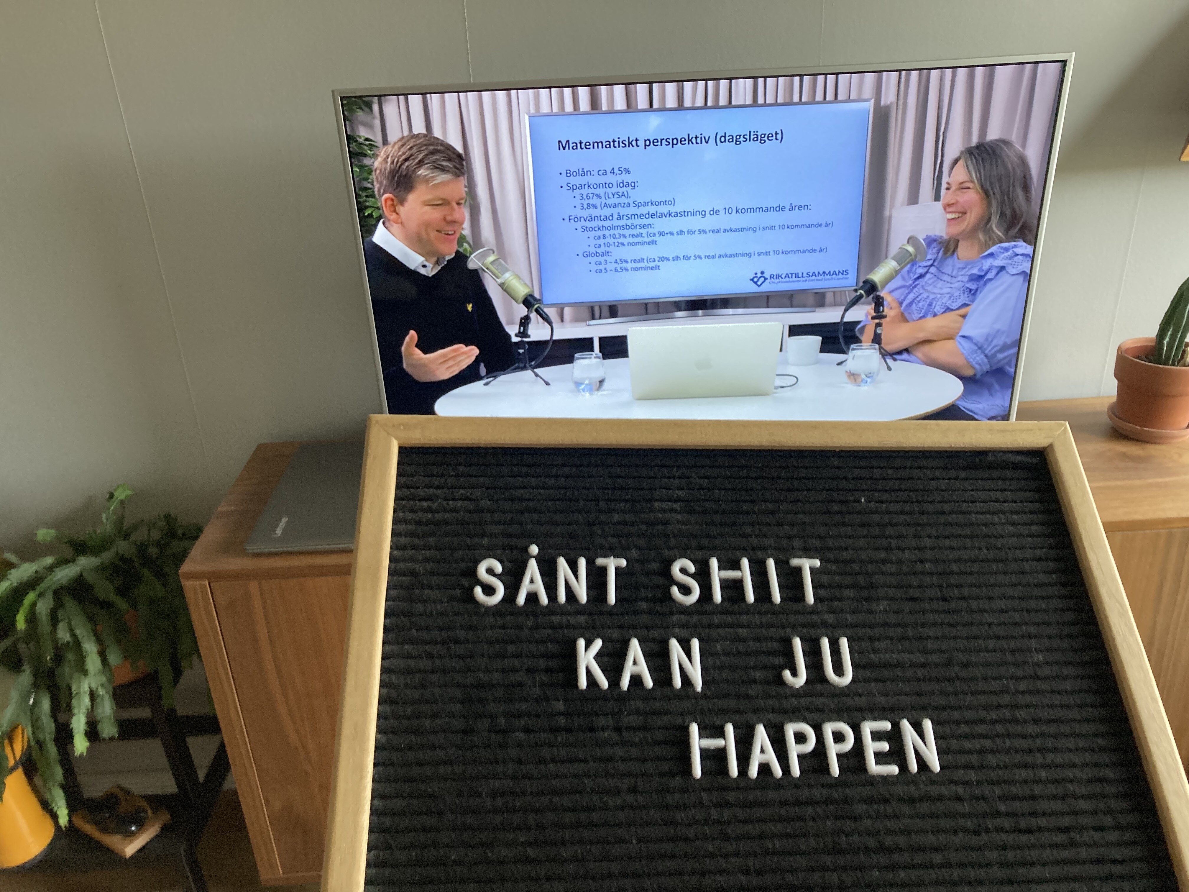 Sen tänker jag lite på det där som du återkommer till Caroline- ”om det går dåligt för Sverige”. Även om kronan ev. kommer studsa tillbaka så känns de där pengarna i globala indexfonder som ”en motvikt” till värdet i huset som kanske har blivit mer överkomligt för den med pengar från exempelvis euro-zonen.