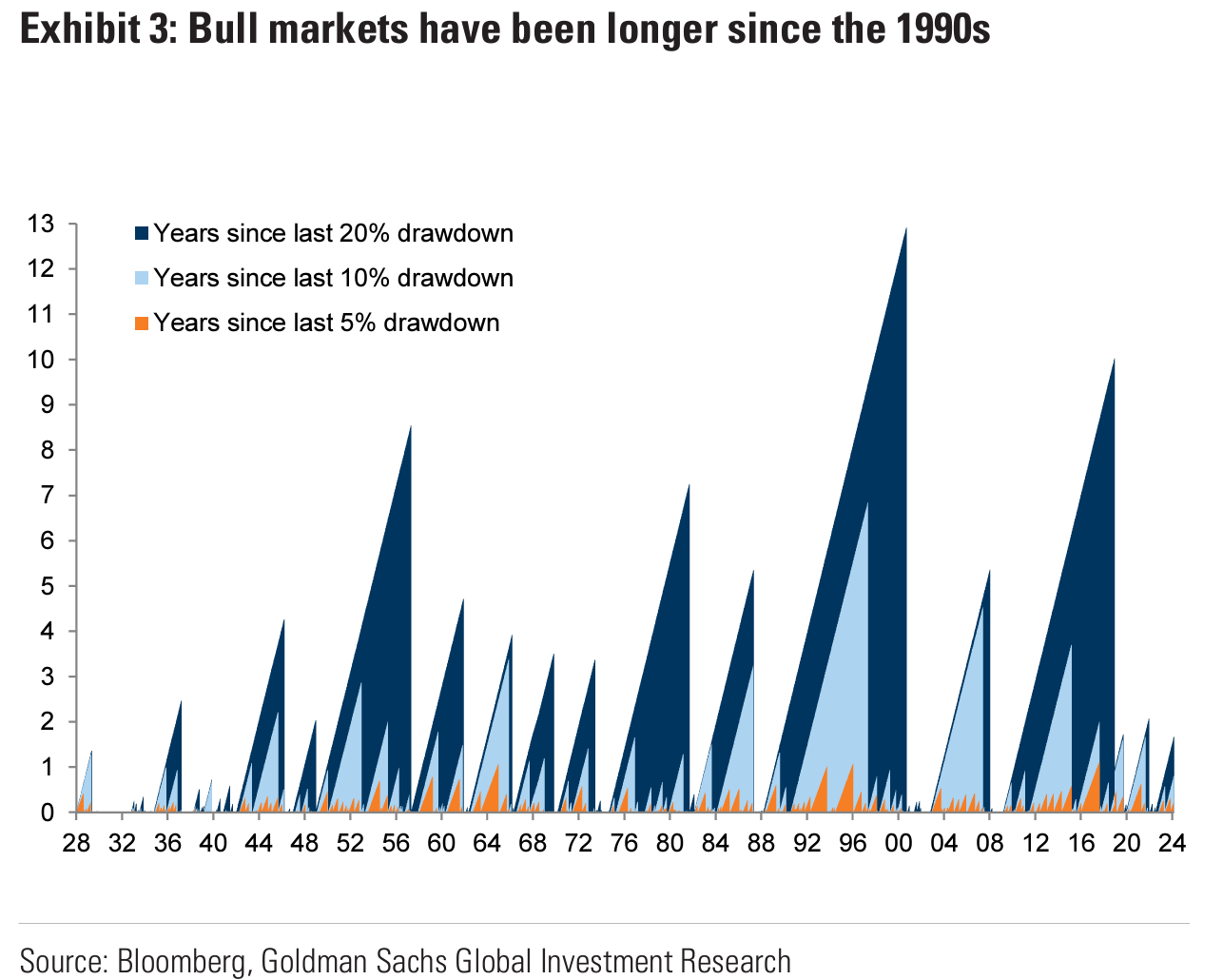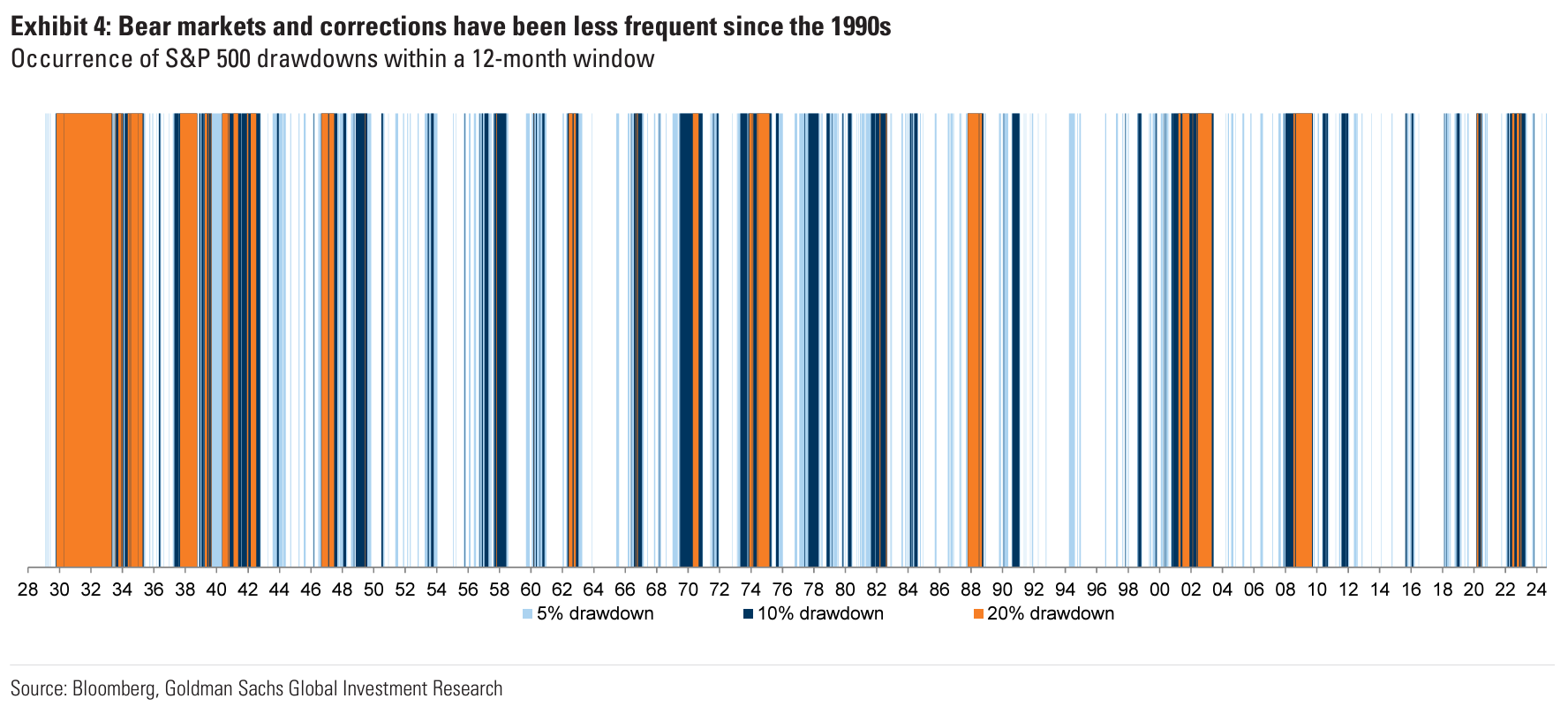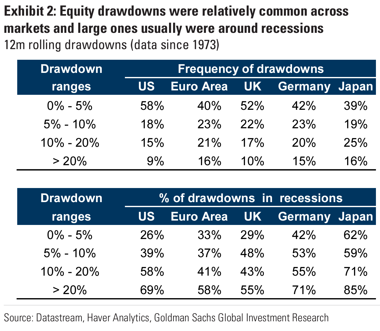 KĂ€lla: Goldman & Sachs: âThe lowdown on the risk of an(other) equity drawdownâ, 240909