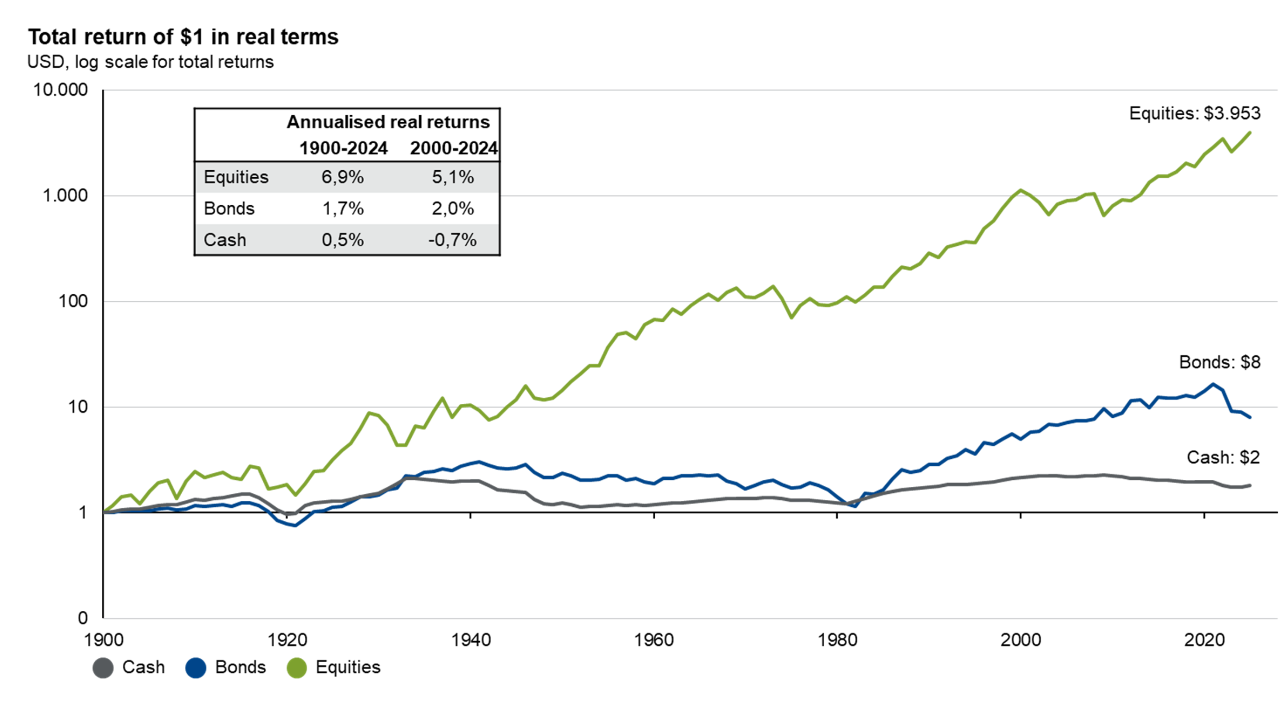 OM man kollar pÄ börstatistik över extremt lÄng tid 200++ Är sÄ Àr genomsnittlig tillvÀxt uppmuntrande. HÀraden 6 % i genomsnitt med inflation avdragen för en vettig bred indexportfölj. nÀra 7 % USA och 5% för vÀrlden i stort.
