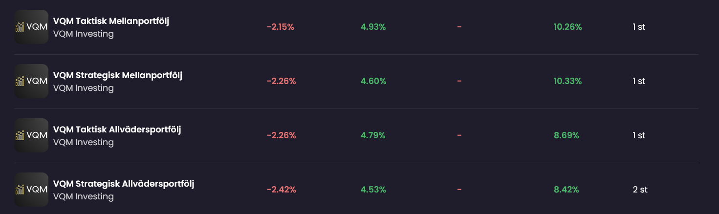 VQM Taktisk Allvädersportfölj: 7,92%