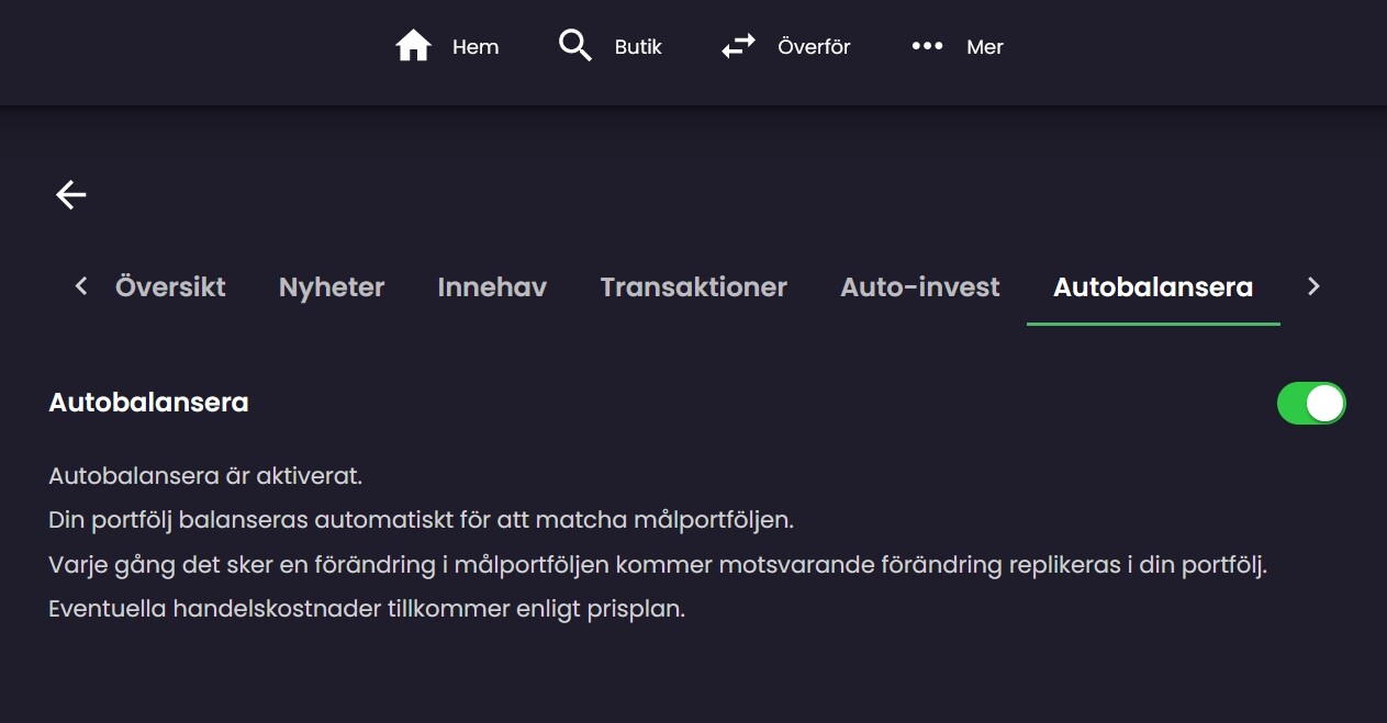 Det finns även en flik som heter “Autobalansera” som ännu inte är lanserad: