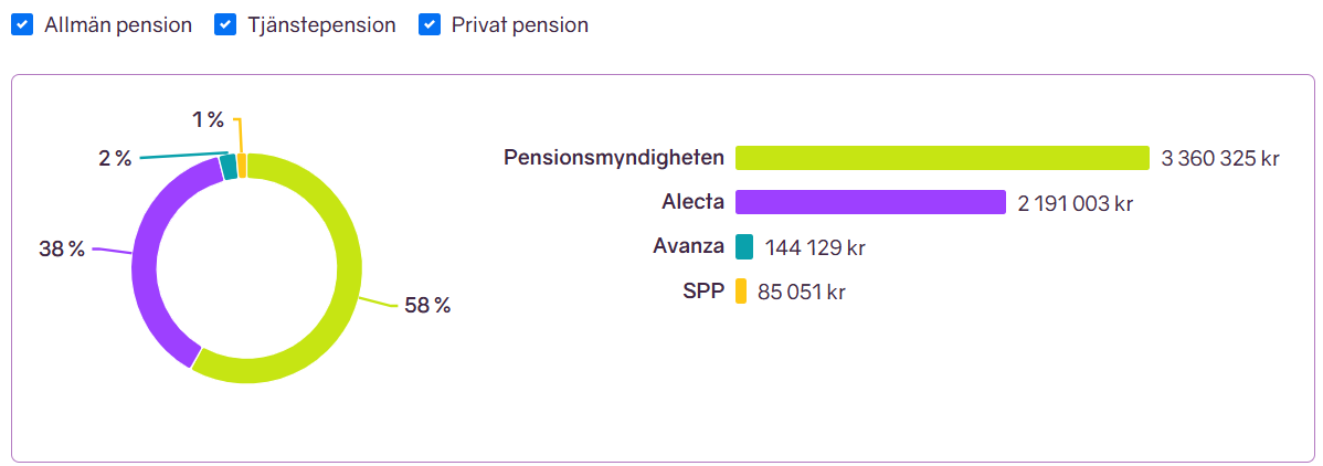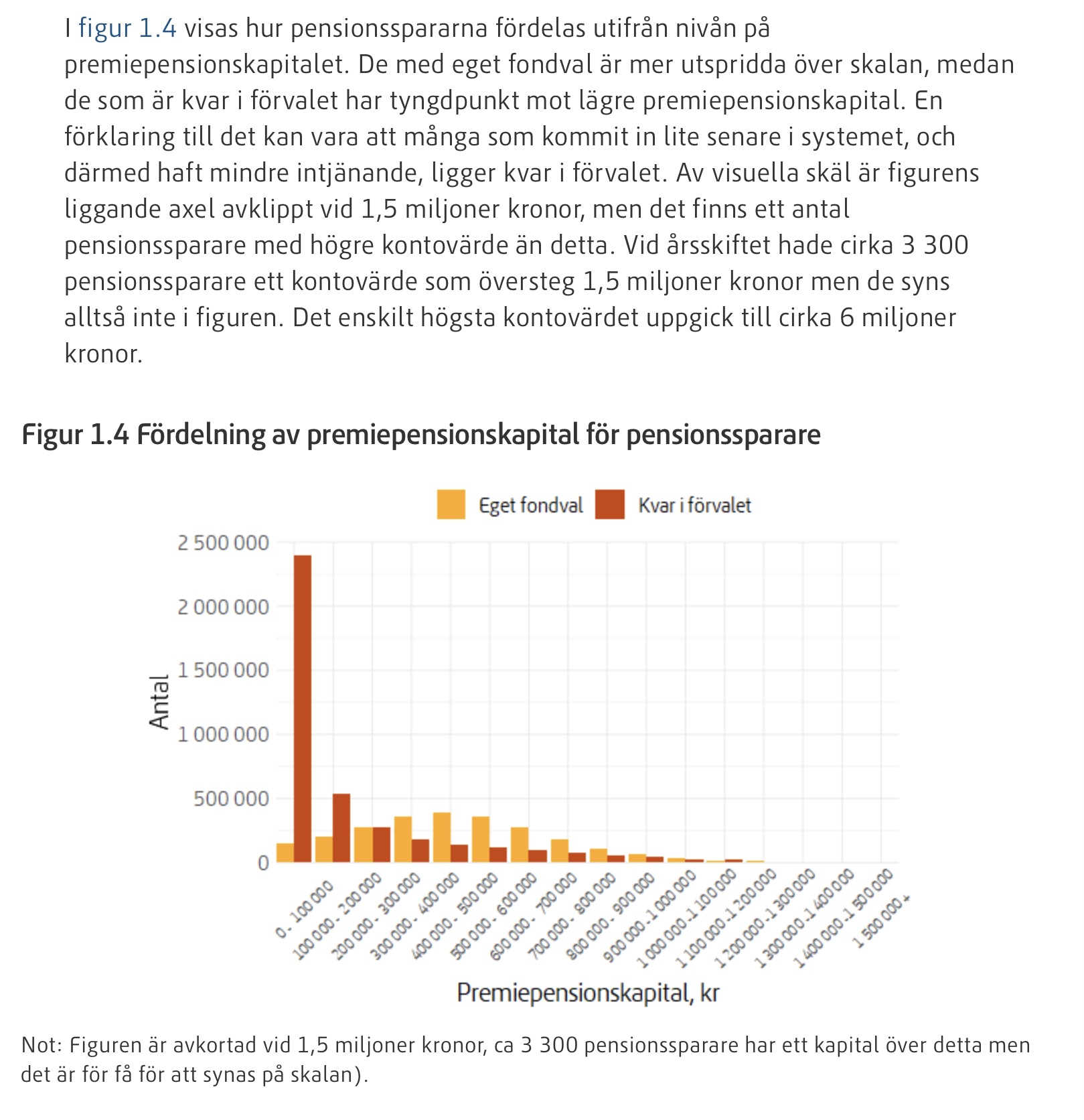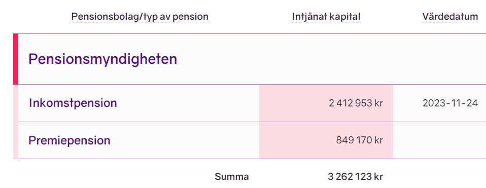 Det är ju jättelite, när jag loggar in på minpension, står det 600K ppm och 1,6M i inkomstpension. Då är jag bara 45.