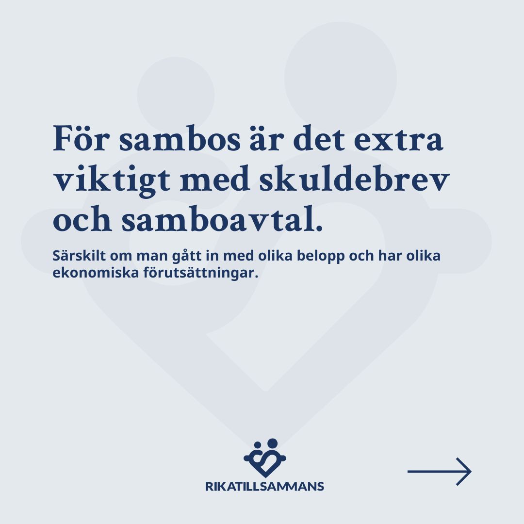 Skillnader mellan att vara sambos och gifta: Gifta par delar på all egendom vid separation, medan sambor endast delar på gemensamt inköpt bostad och bohag. Samboavtal och skuldebrev rekommenderas för sambor som delar bostad och kostnader ojämnt eller har olika ekonomiska förutsättningar.