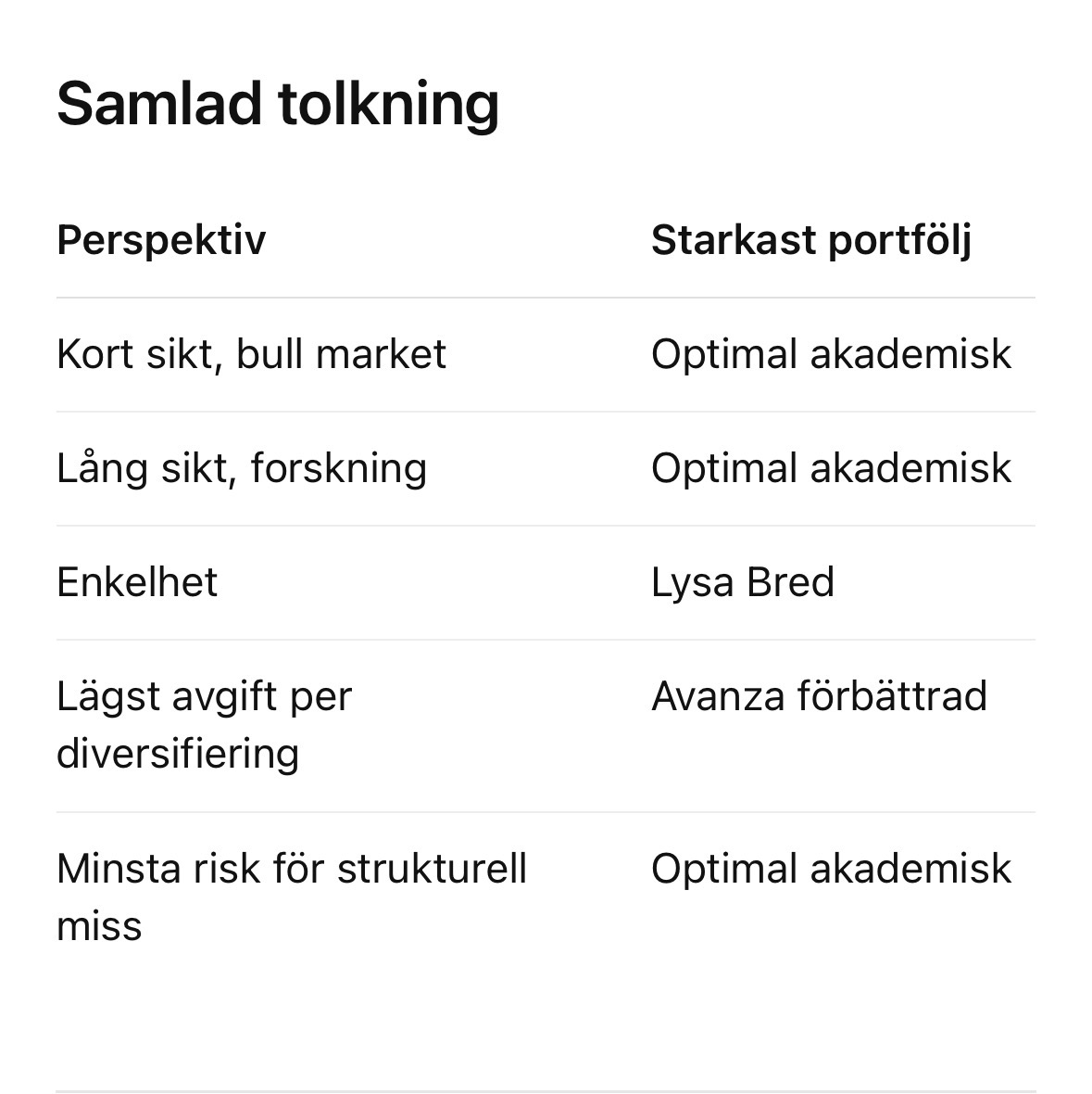 Den optimala akademiska verkar dels inte vara optimal då den har överviktat Sverige, dels verkar den ha lagt in en fond med USA-bolag som “global small cap”. Kan du fråga varför den gjort de valen?
