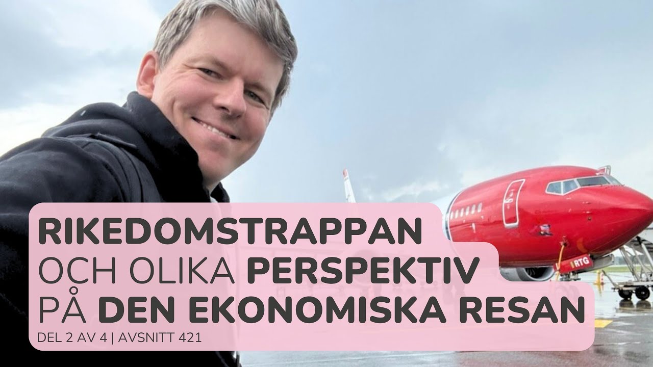 Om du inte har lyssnat på del ett där vi introducerar de olika nivåerna, så rekommenderar jag att göra det först. I denna del två går vi igenom olika perspektiv - vi tittar på olika saker i livet och hur rikedomstrappan relaterar till de här nivåerna. Vi pratar om buffert, sparande, utbildning, typer av investeringar på de olika nivåerna, existentiella frågor, vilka åldrar man brukar nå dem, hur många som flyttar sig mellan nivåerna efter tio år, förhållandet till tid och relationer, samt vilka risker som finns på respektive nivå. Framförallt pratar vi också om vilka generella regler som funkar på varje nivå.