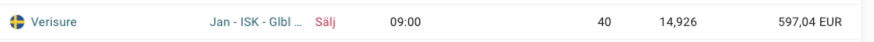 Jag brukar sälja hälften nu på morgongen och hälften i eftermiddag OAVSETT hur det går. Det är det som är tanken med en teckna-sälj. Efter 1730 idag äger jag inga Verisure-aktier.
