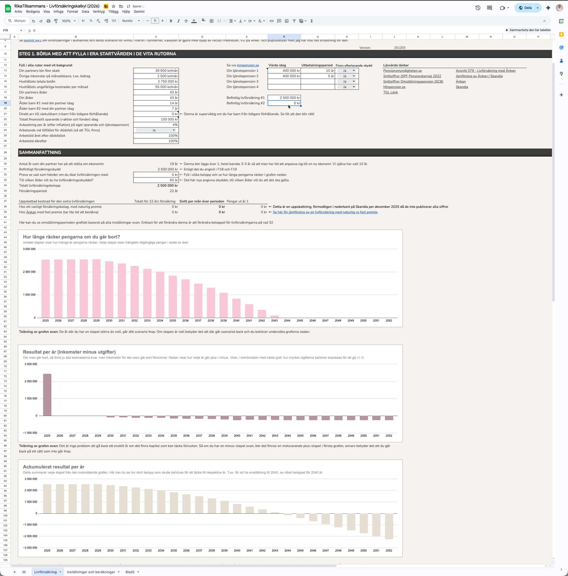 Sen kanske man också behöver se över det här någon gång när man börjar närma sig pension, för då kommer det andra frågor in. Då har tjänstepensionerna börjat växa, du har ett skydd i spardelen på ett helt annat sätt. Men man kanske behöver se över det och matcha det med testamenten och sådana legala dokument.