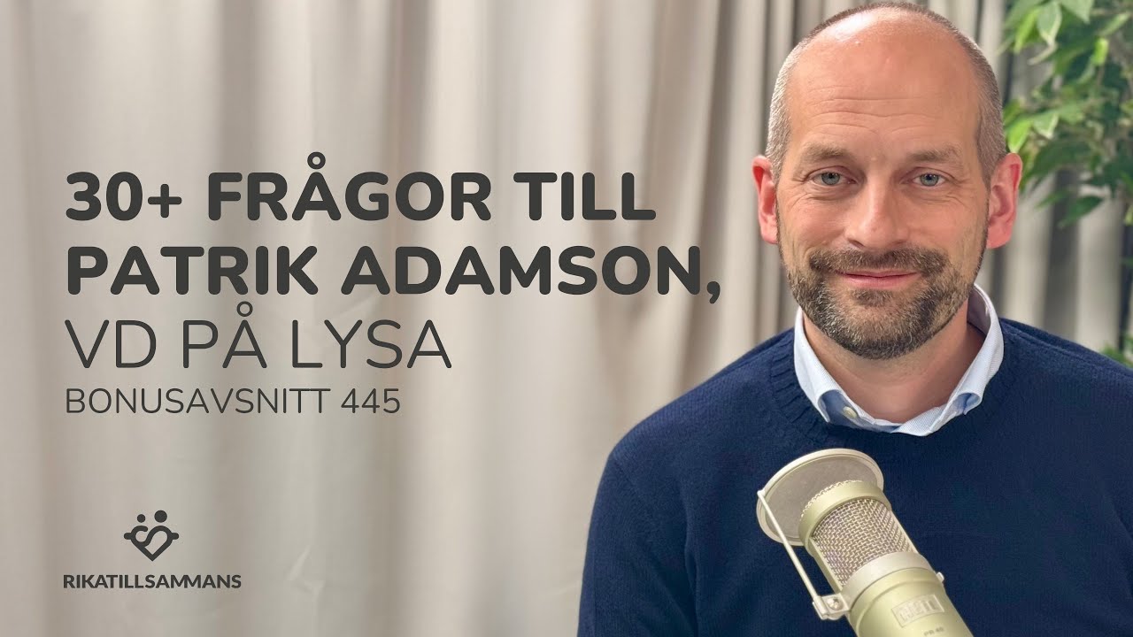 Jan: Välkommen till Rika Tillsammans och dagens bonusavsnitt som är ett lite mer informellt samtal med Patrik Adamsson, grundare och VD på Lysa. Man får säga att han är veteran inom finansbranschen där han har varit på allt från investmentbanker som Merrill Lynch i London till att ha startat Lysa, som idag har över 200 000 svenskar som sparar sina pengar varje månad hos dem.