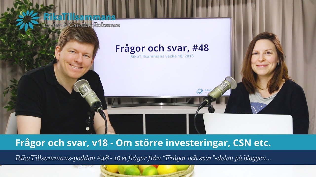 Den här veckan passade jag och Caroline att plocka upp några av frågor från ”Frågor och svar”-delen på bloggen som vi tror kan vara av intresse för flera läsare. Det handlar bland annat om att investera en större mängd pengar, betala av CSN-lånet, om det är okej att ha samma fonder i flera portföljer etc.