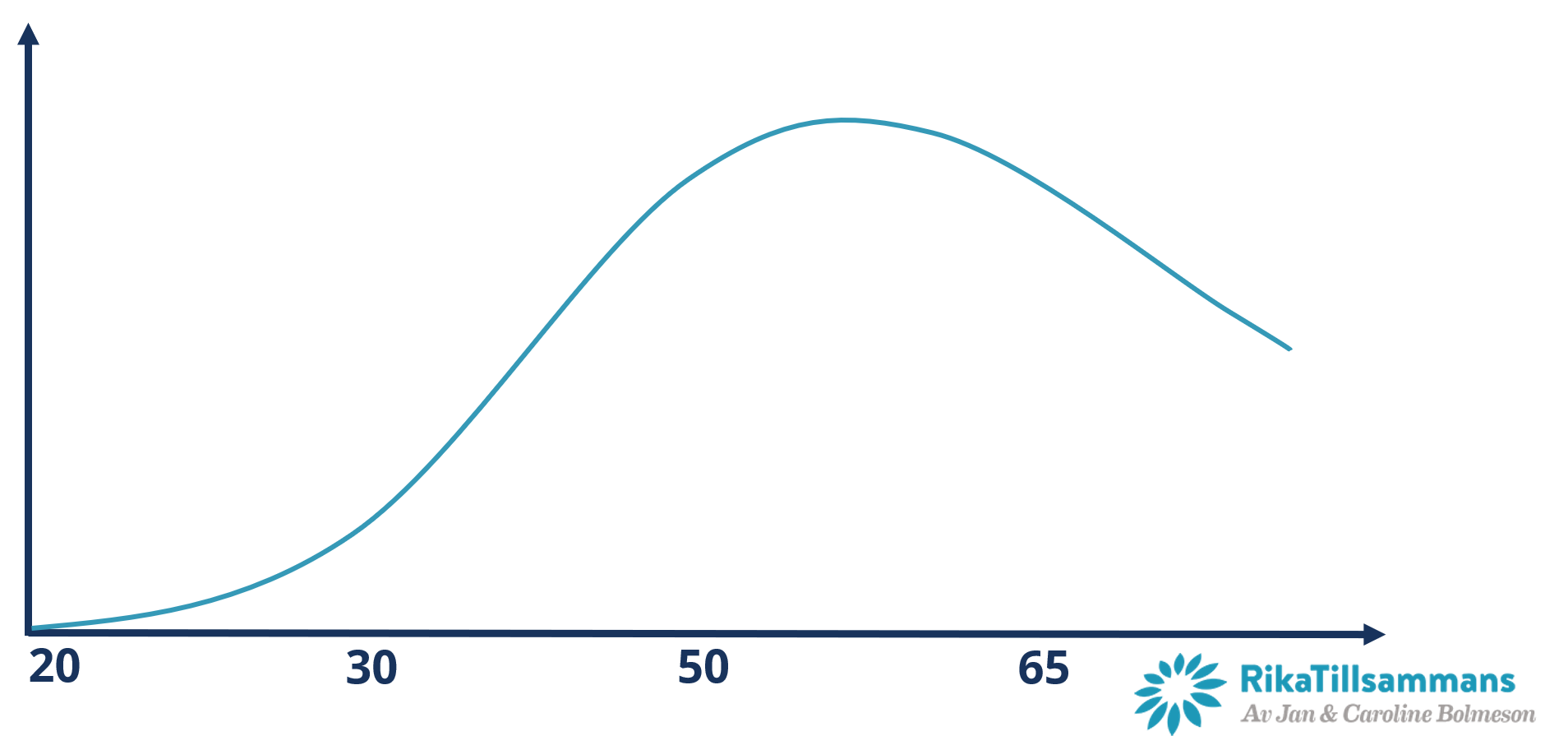 Om man tar ett steg bakåt och tittar på hur en sparandekarriär ser ut så ser den ganska lik ut för de flesta av oss. Man kan till och med grovt rita upp det som en förmögenhetskurva genom livet. Jag skulle säga att den väldigt grovt för de flesta av oss ser ut ungefär som följer:
