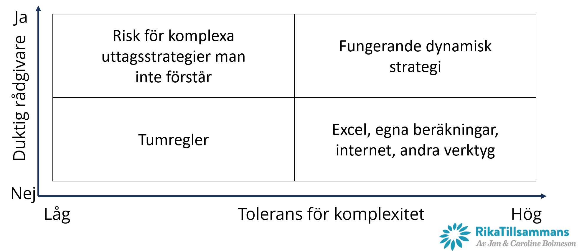 Tyvärr är det som så att det är mycket som står på spel. Fel beslut här kommer tyvärr ha stora konsekvenser. Något som jag oroar mig att många kommer att upptäcka allt för sent. Ungefär som min insikt kring att jag upplever att de flesta sparare har alldeles för hög risk i sina portföljer. Det går bra i en uppåtgående marknad, men när väl kraschen kommer så kommer det vara försent att göra något åt. På samma sätt, väljer man fel strategi, eller fel uttagsnivåer så kan det ha en reell påverkan på ens livskvalitet.