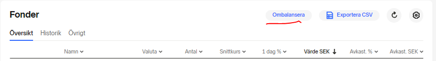 sedan har Avanza en bra funktion som heter “Byt” som du kan använda. Den hjälper till vid ombalansering eftersom den slår ihop “köp / sälj”-transaktionen.