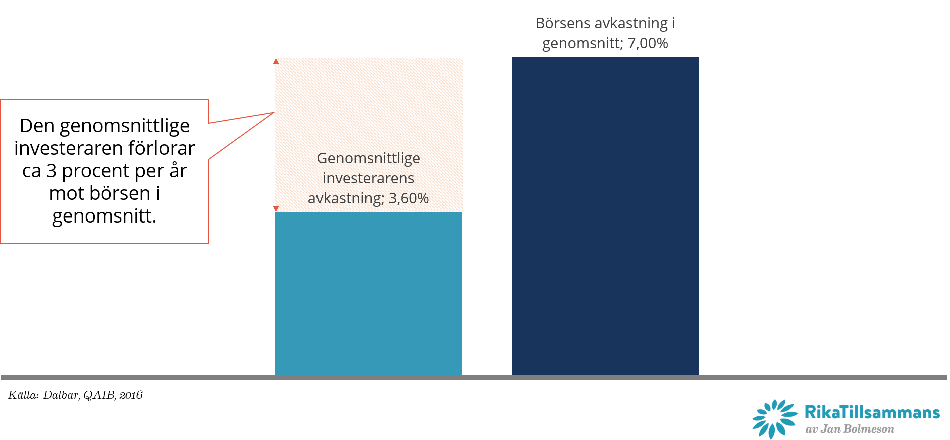 Det amerikanska analysföretaget Dalbar ger varje år ut en rapport som listar den genomsnittlige amerikanske spararens årsmedelavkastning i förhållande till index. Per den 31 december 2016 såg det ut som följer: