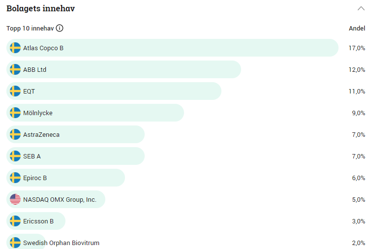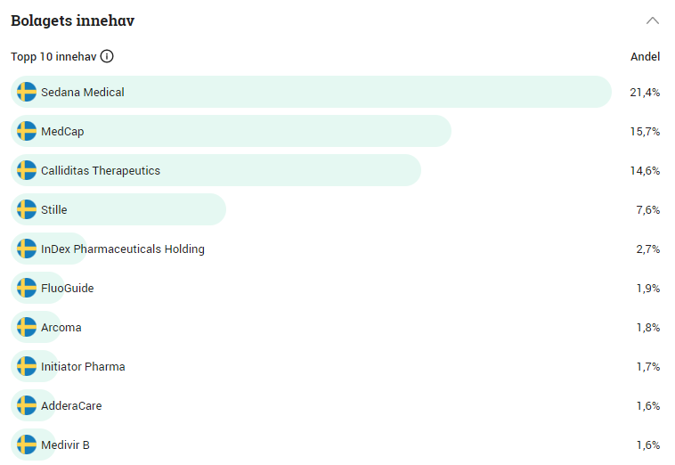 Ja men snabbt borde man få en betydligt bättre bild av att ta de största innehaven och kolla vilka sektorer de hör till… exempelvis för Linc så får man Sjukvård på alla utaom MedCap (som räknas till Finans):