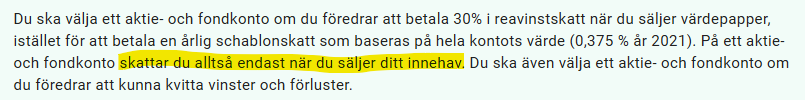 Läste på Avanza om AF och där står det att man skattar 30% på vinsten när man säljer ett innehav?