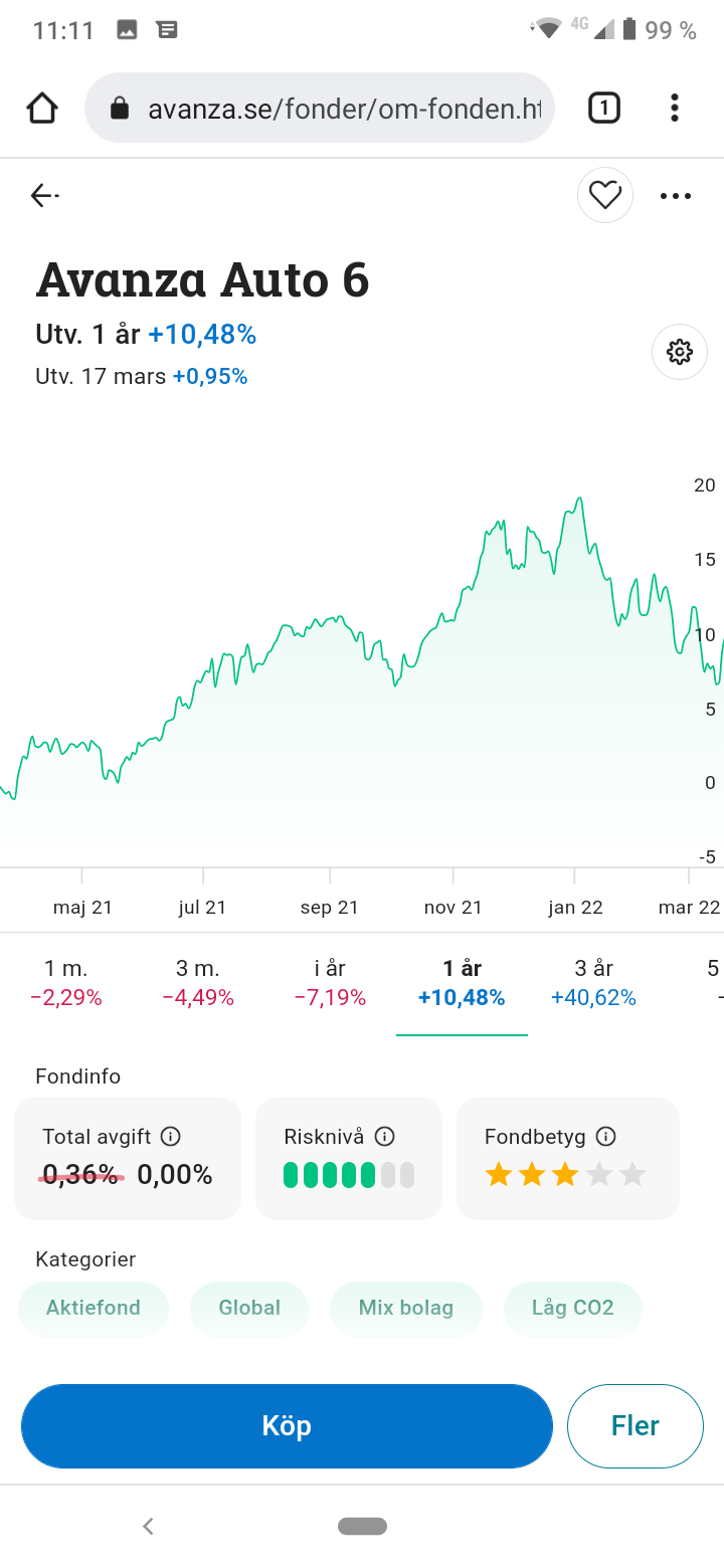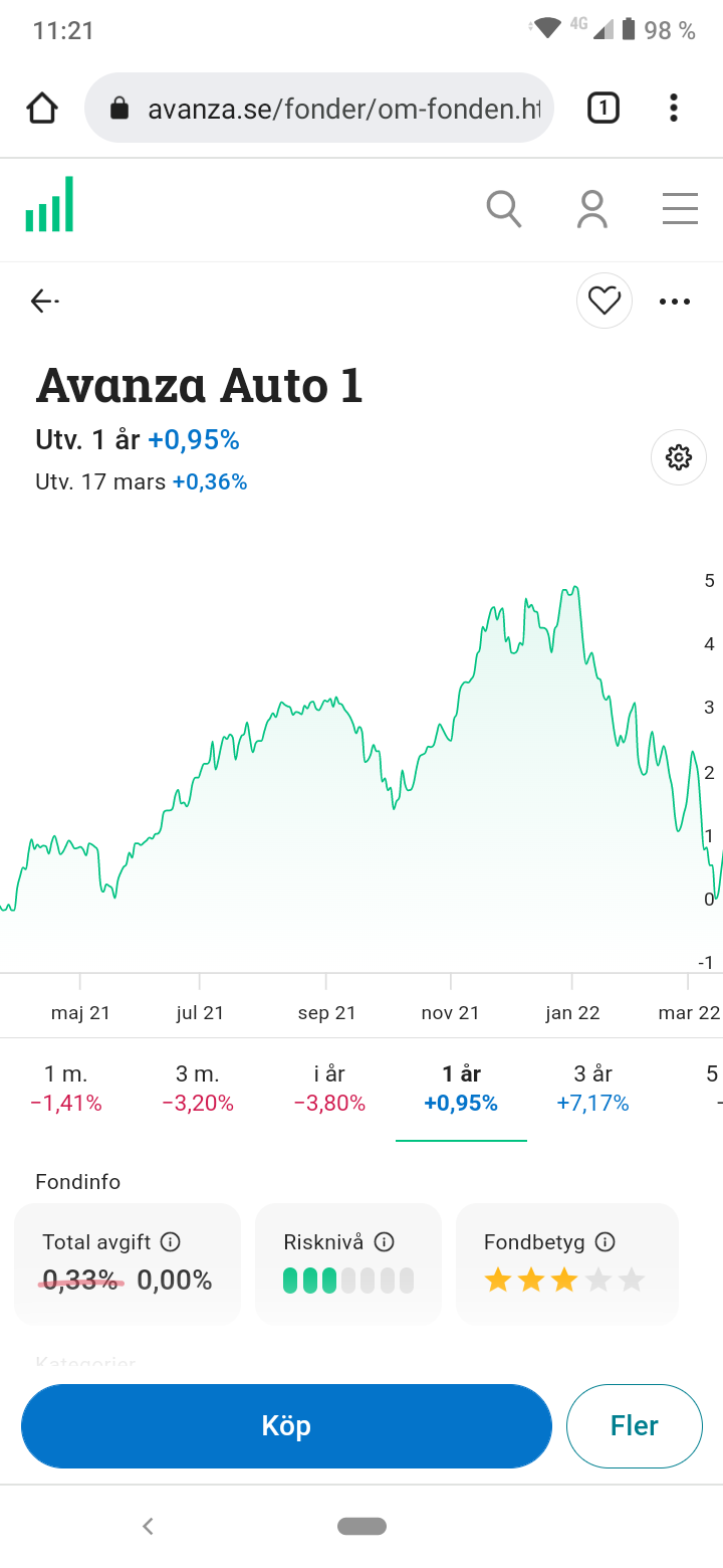 Det är bara så kortsiktigt på 3 mån och då börsen har fallit krig i Ukraina då passar det bättre portföljen med mer räntor. Men kolla på 1 och 3 årssikt på Avanza Auto 4 28% räntor och Avanza Autio 6 100% aktier då blr det som det ska vara långsiktigt. Stor fördel 100% aktieindex och ännu mer skillnad på 5 -10 årssikt. . Svårt att uppnå högre eller samma avkastning långsiktigt med lägre risk. Kolla på Avanza Auto 1!