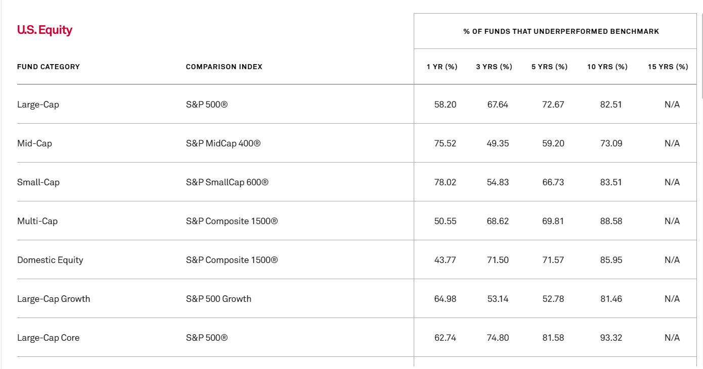 Bästa källan jag brukar referera till är SPIVA. Det vill säga Standard and Poor som tar fram indexen och kan därmed jämföra enklast.