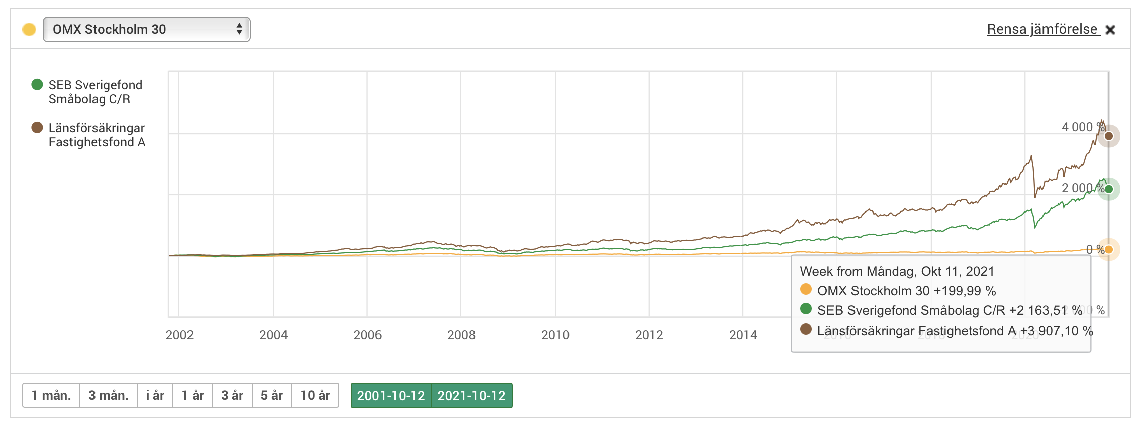 Men även enskilda fonder kan med råge slå bredare index som OMXS30 över en 20-årsperiod, det är inte speciellt svårt att hitta sådana fonder.