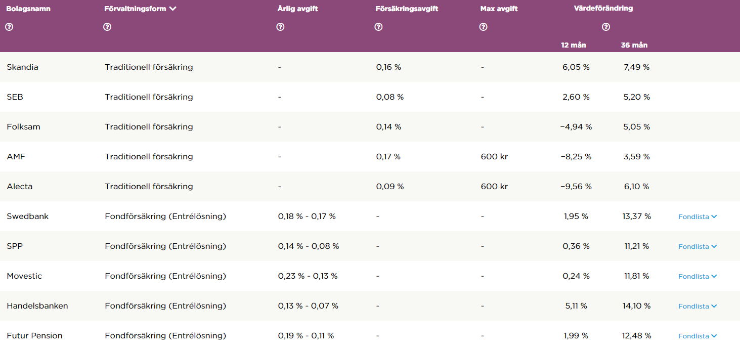 Valde Alecta en gång i tiden av samma anledning som du. Börjar starkt ifrågasätta det nu. Men jag har ej koll på hur de andra alternativen förvaltar sina aktieportföljer. En gissning är att det är aktiv förvaltning även hos konkurrenterna…
