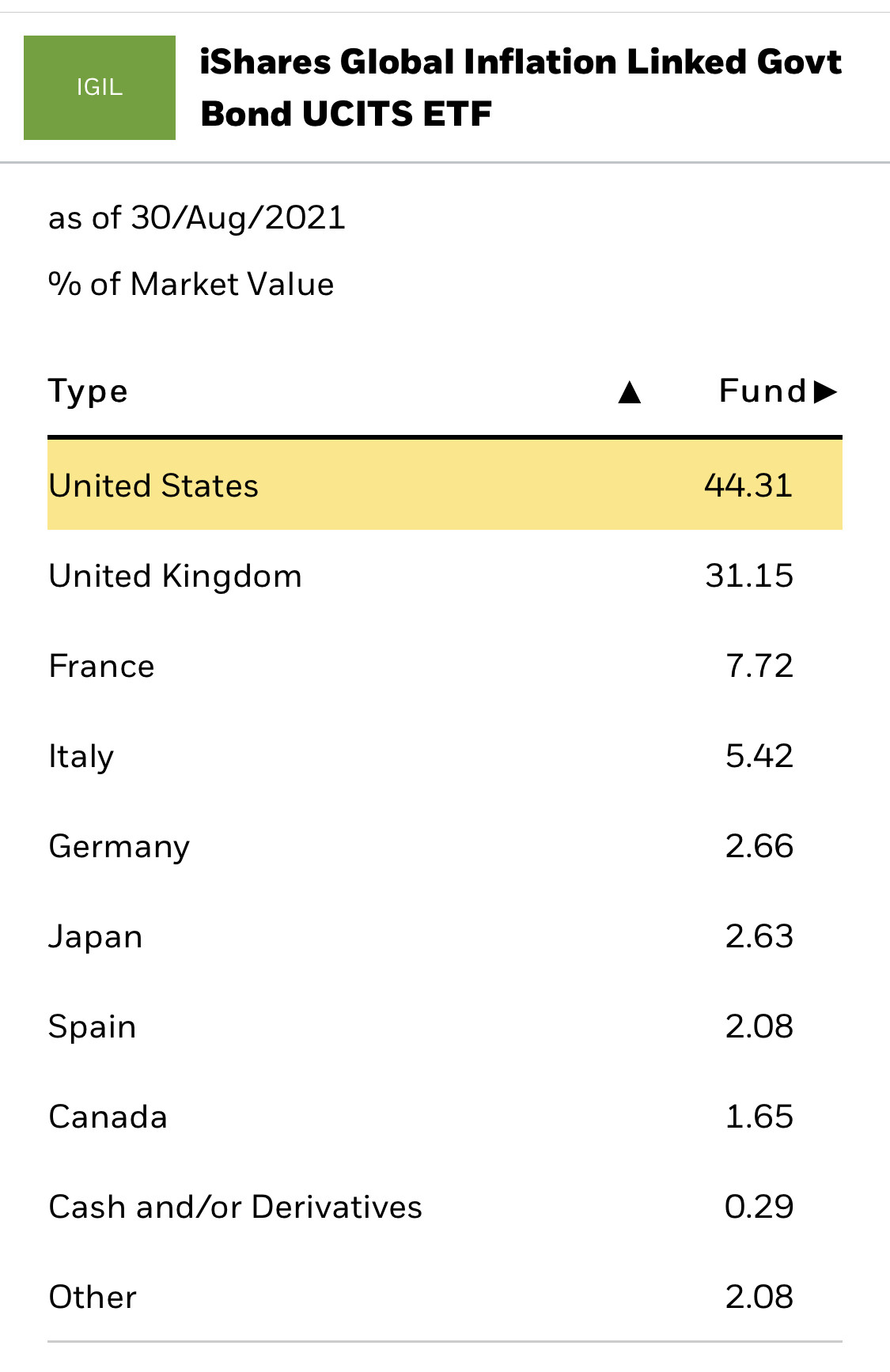 Skillnaden härrör från faktumet att inte alla länder utfärdar realränteobligationer. Därför blir universumet mer begränsat för IUS5 än IGLE. Att UK får er så stor vikt i IUS5 jämfört med i IGLE beror just på att marknaden för realränteobligationer historiskt varit stor i UK, vilket har hängt kvar till idag med stor volym som utges.