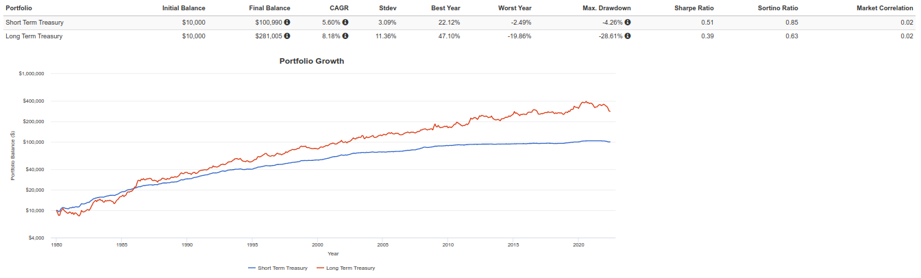 Tittar på vi på obligationer i isolation från aktier så har obligationer med korta löptider