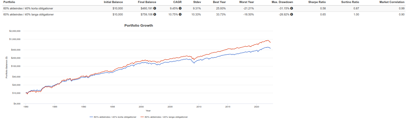 60/40 med långa löptider på obligationerna vinner på alla punkter!