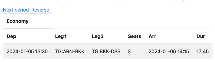 Hittade en resa i ekonom till balii, fast först efter nyår, via bankkok och med Thai Airways.