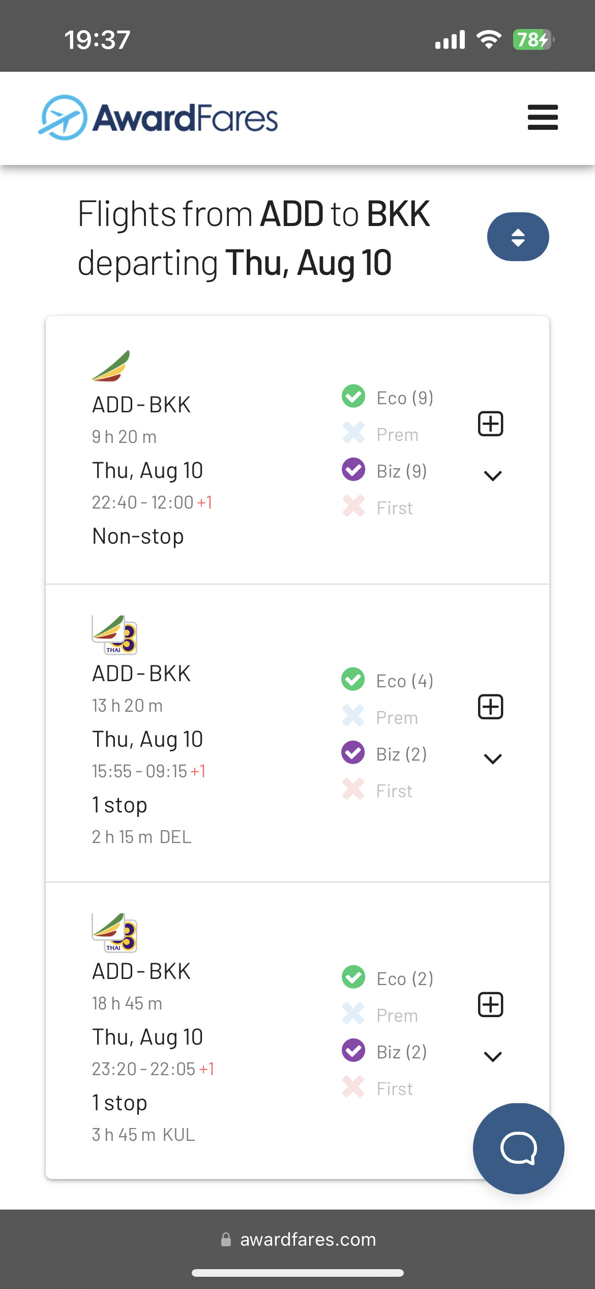 Har du betal-versionen av awardfares? Du får klicka också på ”förstoringsglaset” annars söker den inte. Har du några specifika datum du vill åka/komma tillbaka, bara thailand eller asien överlag? 2 pers? Kan hjälpa dig leta lite om du vill.