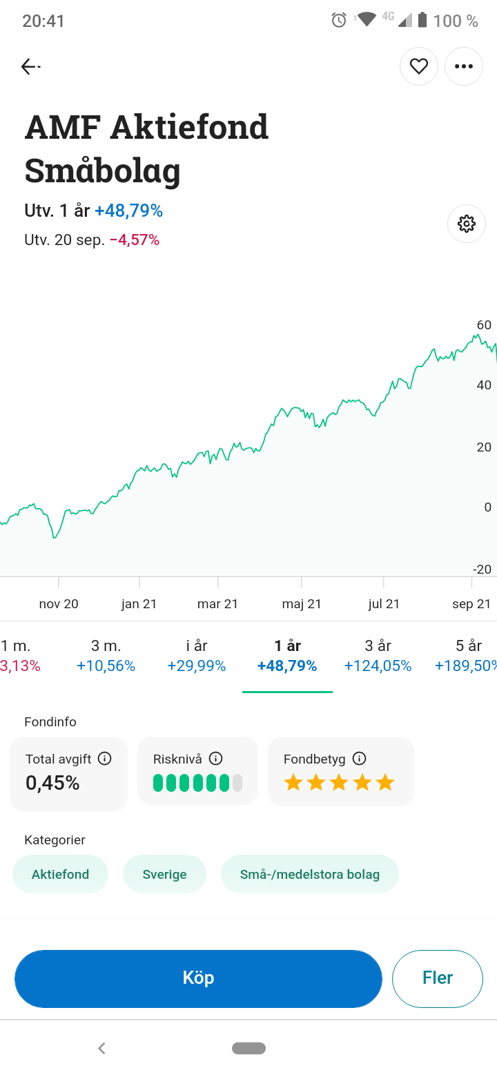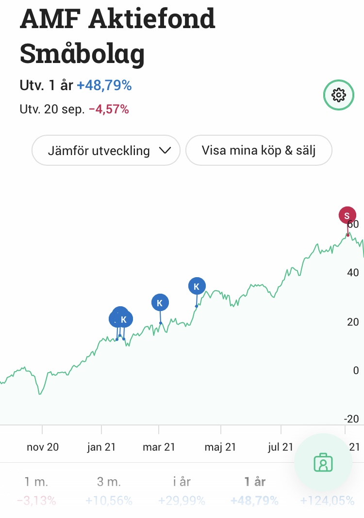 Får nog ta mig en funderare på om jag ska ha kvar AMF Aktiefond småbolag eller inte. Det tar alltid emot för mig att inkludera aktiva fonder i min portfölj.
