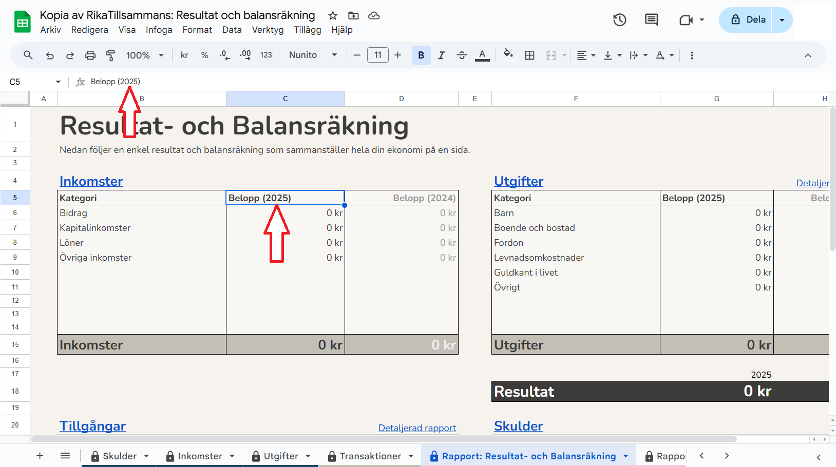 Tack för alla svar, ska testa ersätta funktionen. Det verkar som att flera utav “summera” flikarna (exempelvis “utgifter” ) hämtar information beroende på årtal.. exempelvis så kommer inte transaktioner med datum 2026 med i utgifter. Ska se om er hjälp löser detta!