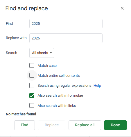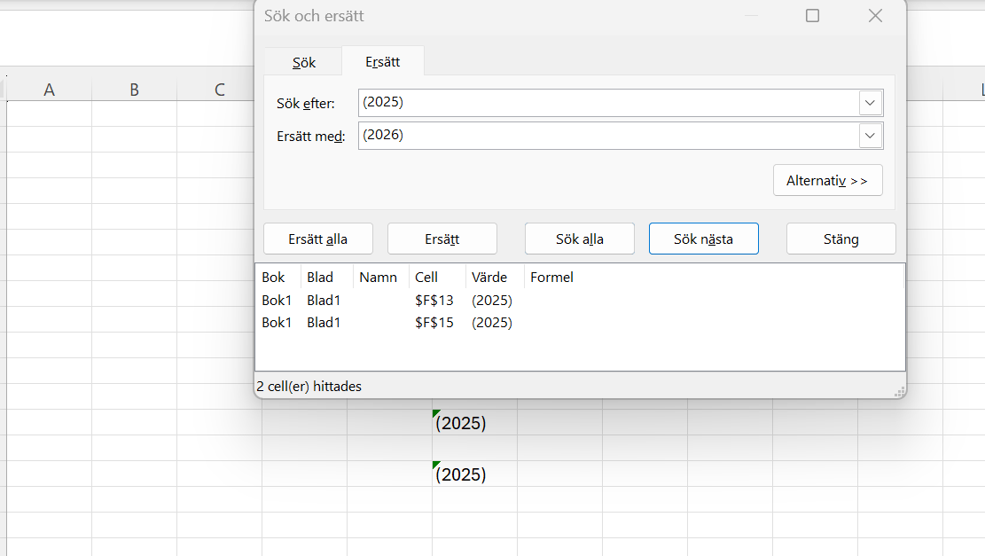 Lite farligt att köra “replace all” … om dokumentet innehåller massor av siffror så kan ju 2025 råka dyka upp i fält som inte är relaterade till datum.