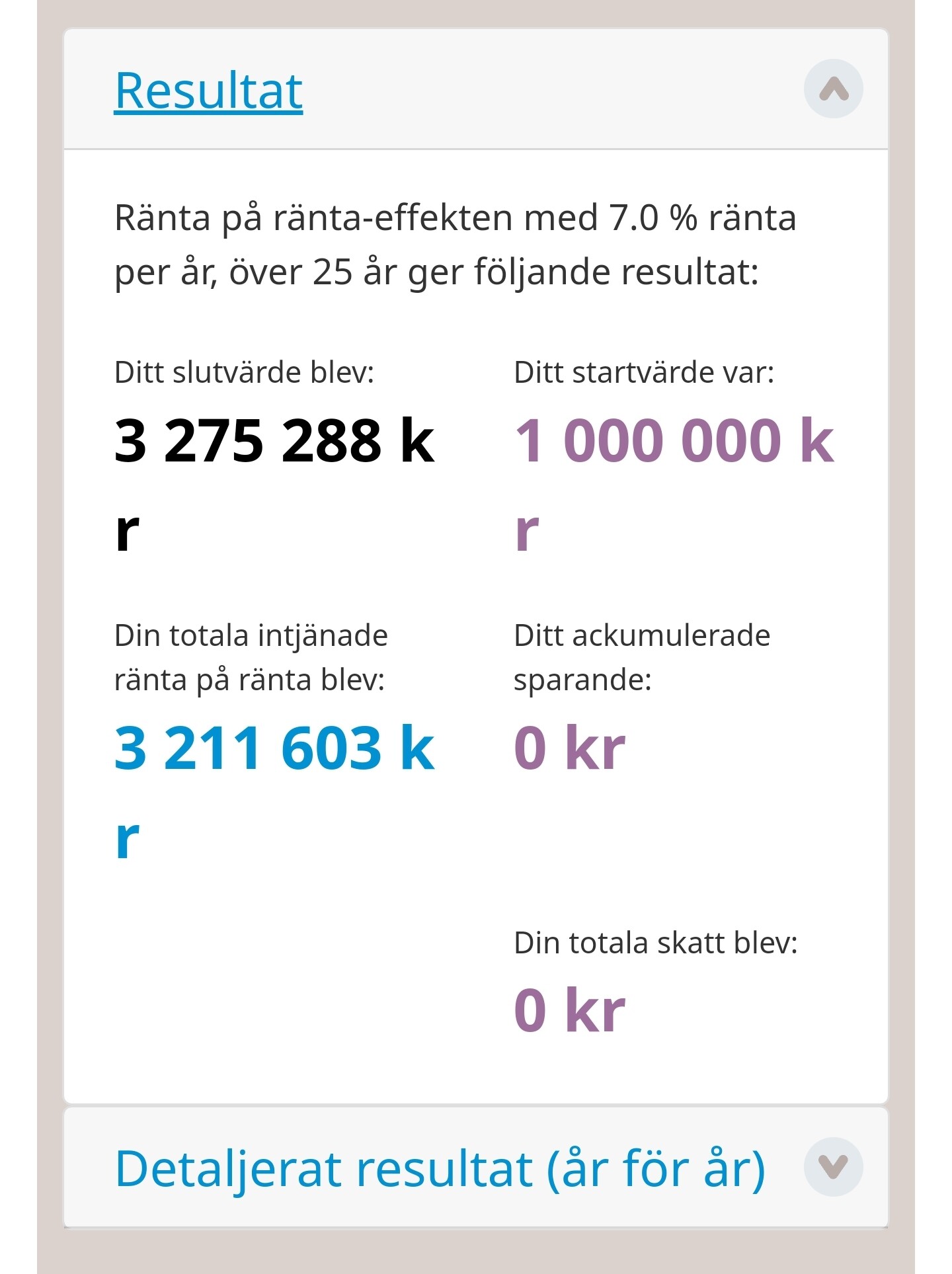 Vill man räkna inkl tex inflation på 2% så kan man höja avkastningen tlll 9% eller 8% efter ISK skatt. Man kan såklart välja vilken inflation man vill.