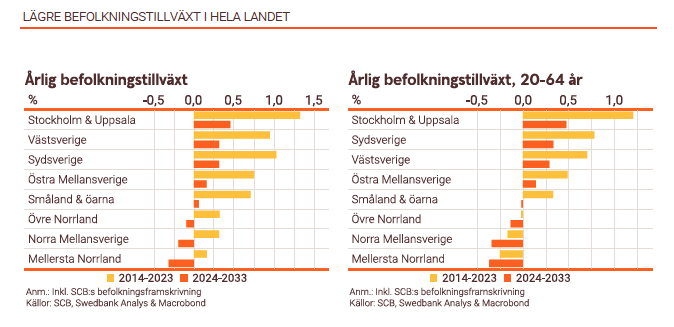 Med minskad befolkningstillväxt kommer behovet av behovet av bostäder minska i kombination med att fler äldre kommer minska sysselsättningsgraden som leder till att lönerna inte kommer öka nämnvärt.