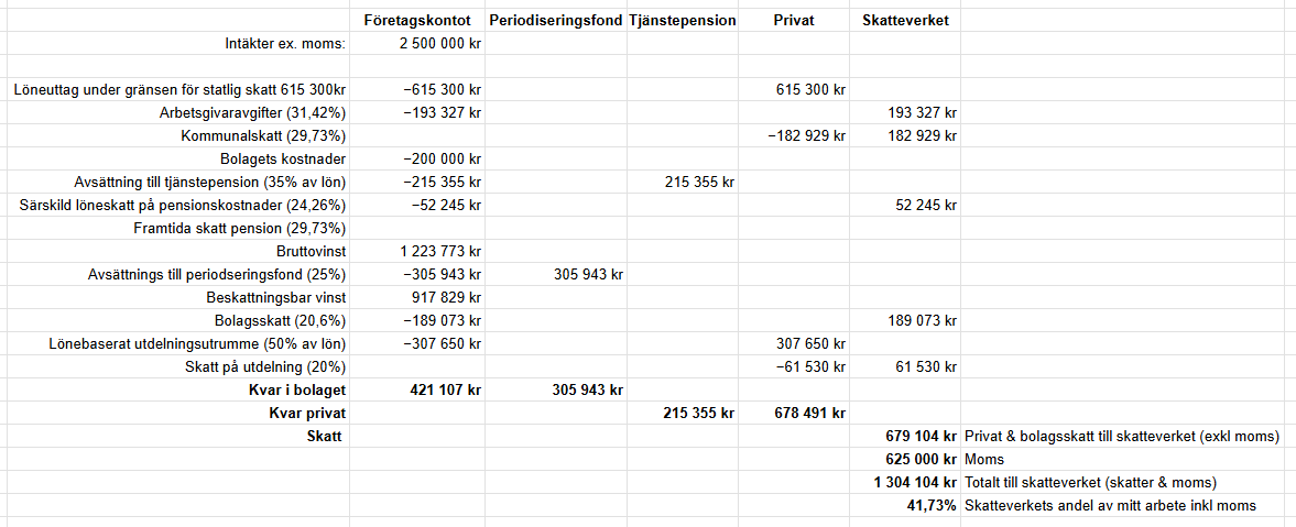 Jag vill såklart göra rätt men inte betala mer skatt än nödvändigt, är detta exempel optimerat eller finns det det något mer att göra?