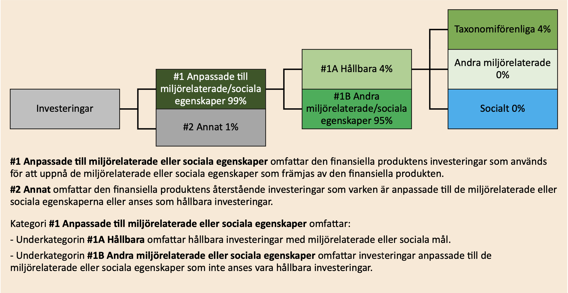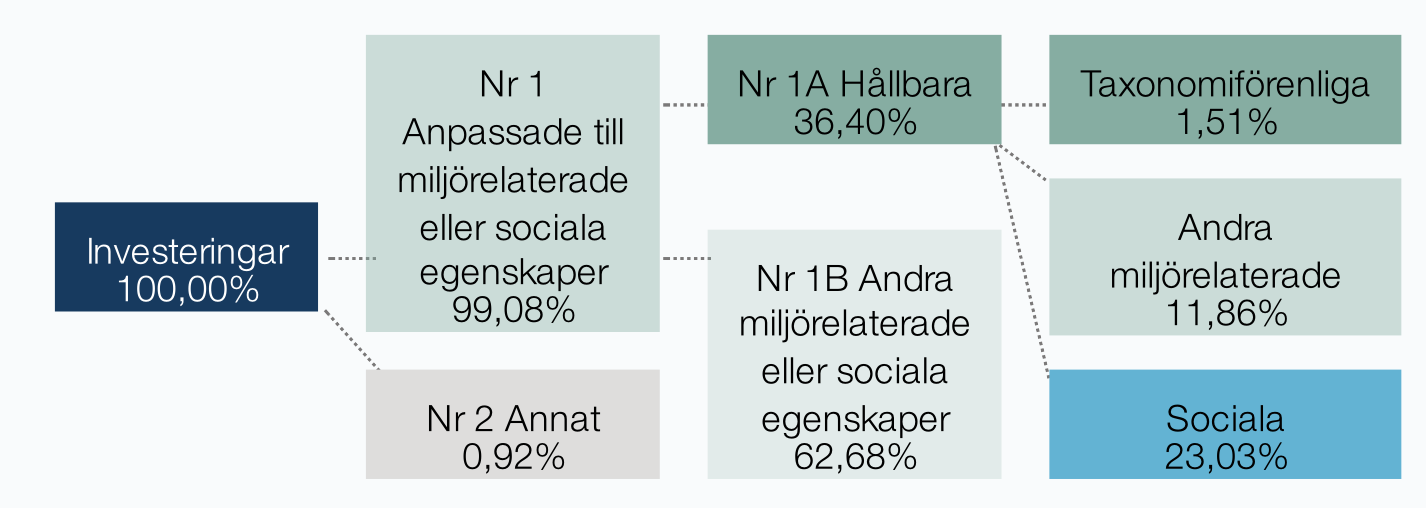 - 4% av fonden i hållbara investeringar (SHB hade 36,40%)
