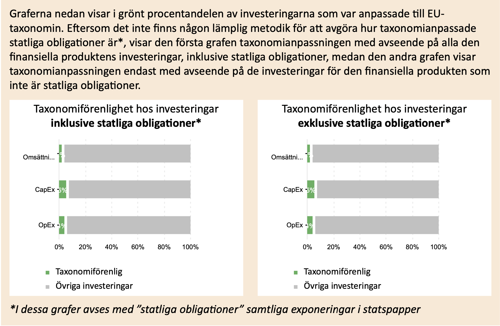- Andelen investeringar i omställningsverksamheter och möjliggörande verksamheter var 1 procent respektive mindre än 1 procent av fondens marknadsvärde vid årets utgång. (SHB hade över 20%)